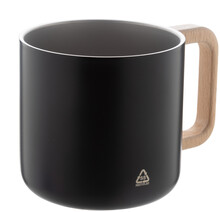 Dvoustěnný termo hrnek z recyklované nerezové oceli s dřevěným uchem. 350 ml.