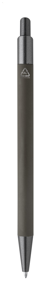 Kuličkové pero z recyklovaného hliníku s pogumovaným tělem a kovovými částmi. S modrou náplní.