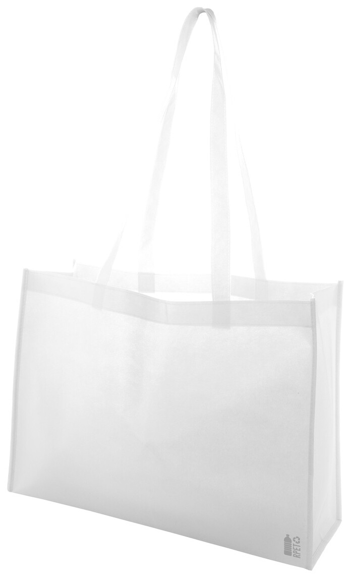 Nákupní taška z netkané textilie RPET s klínem a dlouhými uchy, 80 g/m2. S výrazným logem RPET.