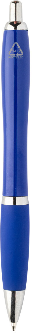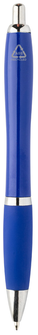 Kuličkové pero z recyklovaného ABS plastu s úchopem v odpovídající barvě a chromovanými částmi. S modrou náplní.