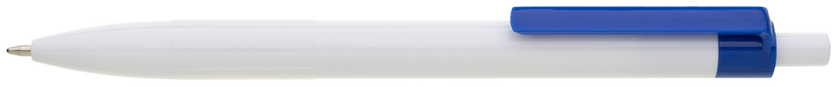 Plastové, kuličkové pero BIARE má bílé tělo, profilovaný úchop a modrý klip. Náplň X-20 (120mm), modře píšící.