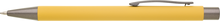 Kovová propiska CAGERI SOFT s hnědo-černými doplňky, s žlutým pogumovaným povrchem. Velkoobsahová modrá náplň.