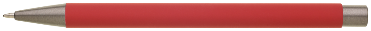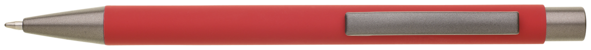 Kovová propiska CAGERI SOFT s hnědo-černými doplňky, s červeným pogumovaným povrchem. Velkoobsahová modrá náplň.