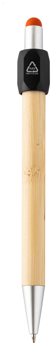 Bambusové kuličkové a dotykové pero s fidget spinnerem z recyklovaného ABS plastu. S modrou náplní.