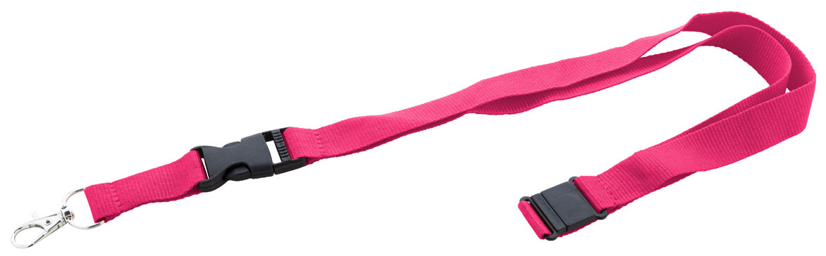 Polyesterový lanyard RPET s odnímatelnou kovovou karabinou a bezpečnostní přezkou.