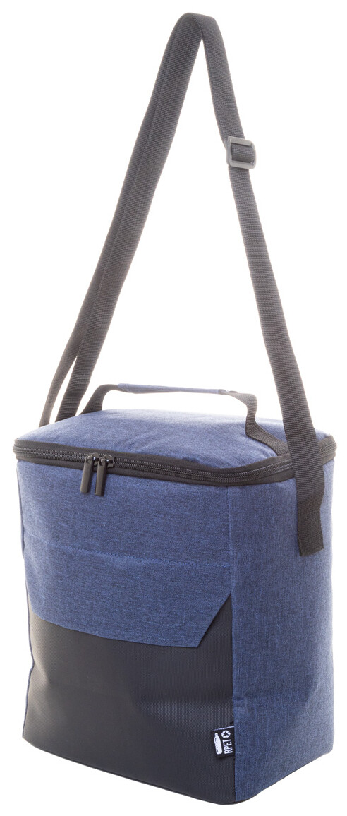 Chladicí taška na zip z RPET s detaily potaženými PU a PEVA vycpávkou. S rukojetí, nastavitelným ramenním popruhem a malou přední kapsou. 600D RPET polyester s výrazným štítkem RPET.