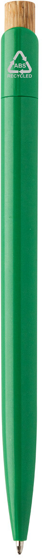 Kuličkové pero z recyklovaného ABS plastu s bambusovým tlačítkem. S modrou náplní.