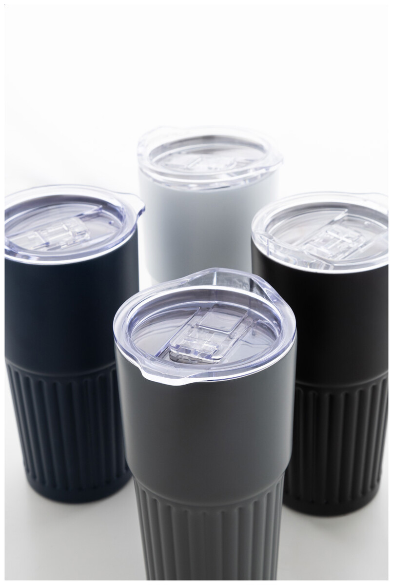 Dvoustěnný termo hrnek z recyklované nerezové oceli s víčkem na pití z ABS plastu. 600 ml.