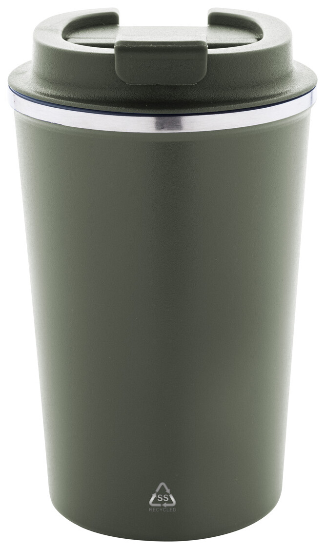 Dvoustěnný termo hrnek z recyklované nerezové oceli s víčkem na pití z PP. 350 ml.
