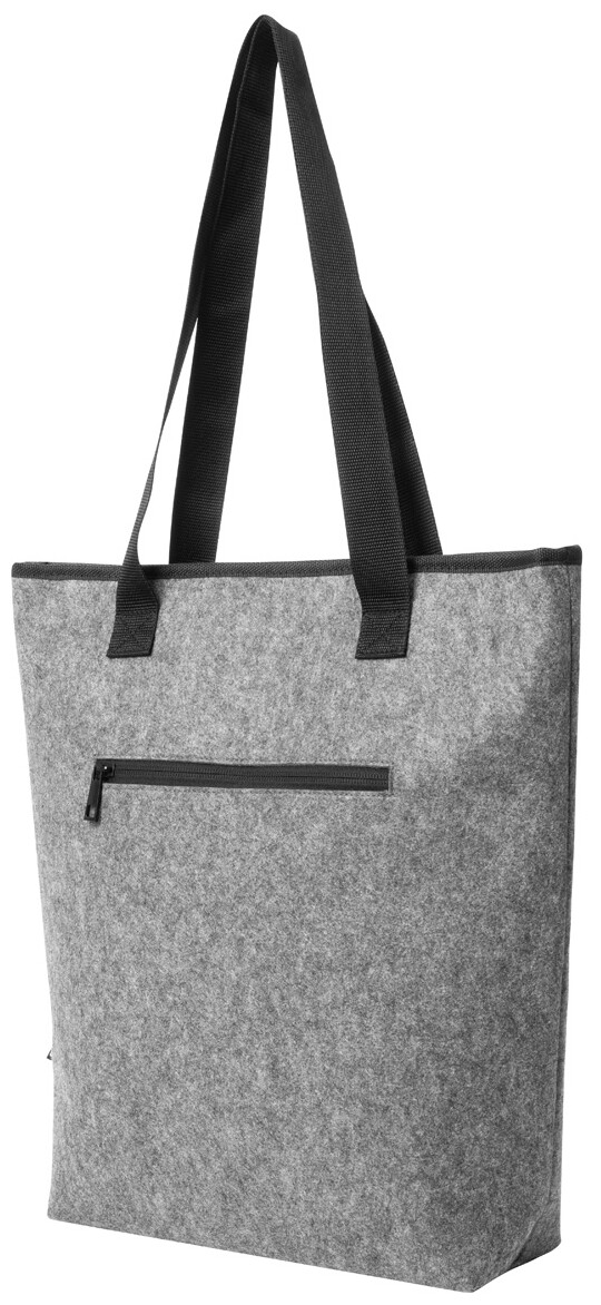 Chladicí nákupní taška z RPET plsti s hliníkovou výplní. Se zapínáním na suchý zip, přední kapsou na zip a dlouhými uchy. S výrazným štítkem RPET.