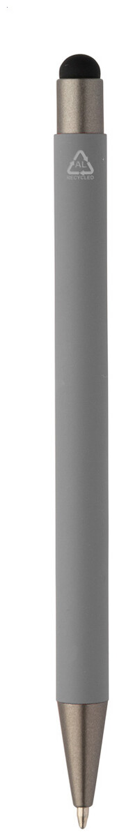 Kuličkové pero a dotykové pero z recyklovaného hliníku s pogumovaným tělem a kovovými částmi. S modrou náplní.