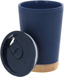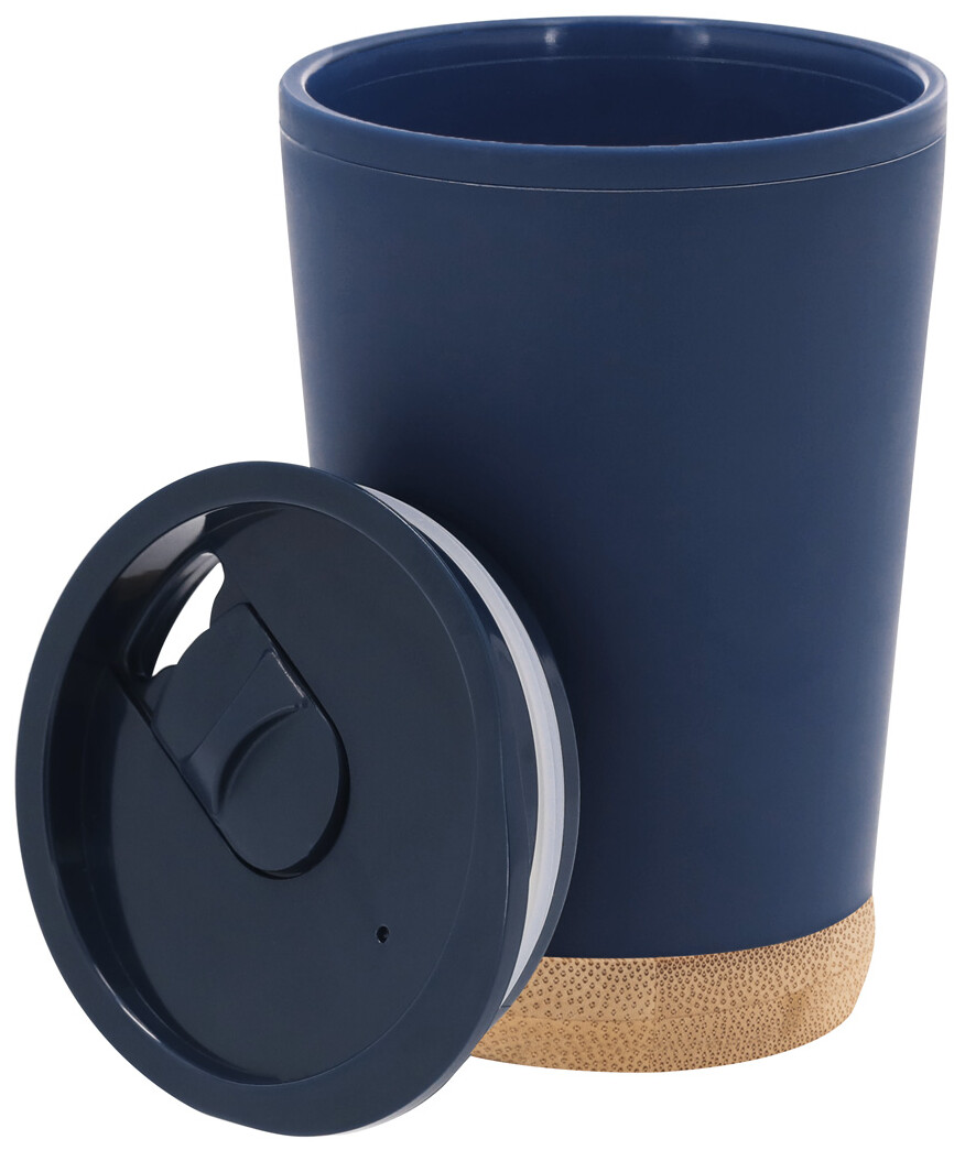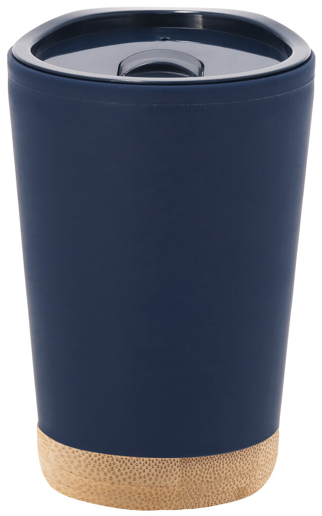 Dvoustěnný termo hrnek izolovaný PP plastem s víčkem na pití a bambusovým dnem, 260 ml.