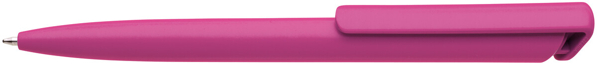 Česká propiska BOIA v minimalistickém designu tmavě růžového oválného těla s dynamickým tvarem tmavě růžového masivního klipu. Tělo i klip nabízí velký prostor pro značení logem zákazníka. Materiál plast, náplň velkoobsahová, modře píšící. BOIA je vyráběna v České republice.