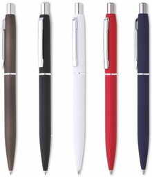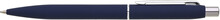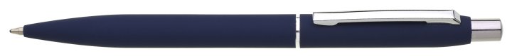 Kovová tmavě modrá pogumovaná propiska se stříbrnými doplňky a efektem lesklého stříbrného laseru.