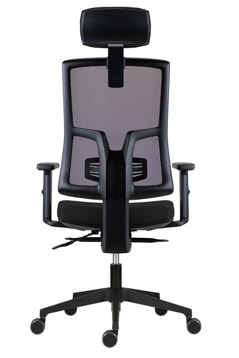 kancelářská židle s čalouněným sedákem, černou síťovinou na opěráku a volitelným čalouněným podhlavníkem