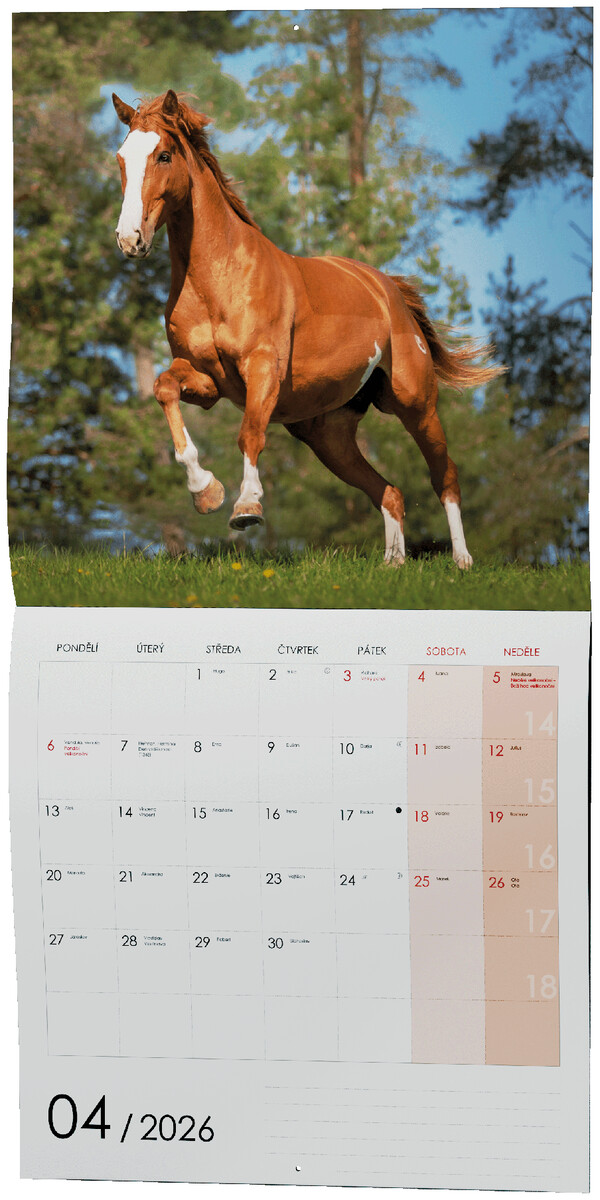 Nástěnný kalendář s měsíčním kalendáriem, v moderním formátu LP desky. Je věnován všem milovníkům koní.