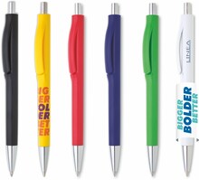 Propiska LINEA modrá má zajímavě řešený klip a stříbrné doplňky, modře píšící náplň. Kolekce DESIGN.