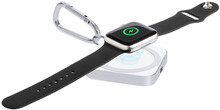 Magnetická bezdrátová rychlonabíječka (15W) v hliníkovém pouzdře s karabinou. Určeno pro nabíjení smartphonů, sluchátek a chytrých hodinek. Kompatibilní s iPhone® 12 nebo novějším.