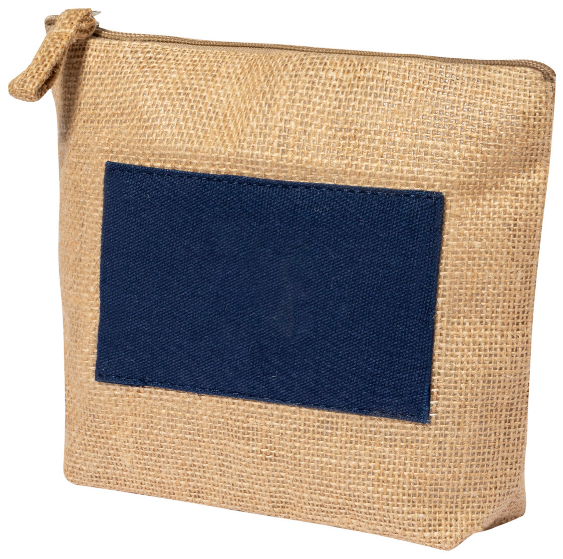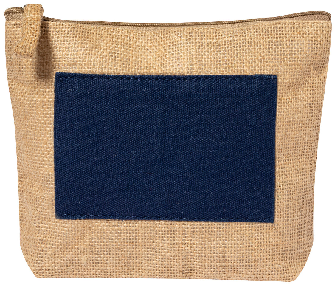 Kosmetická taštička na zip z laminované juty a bavlny.