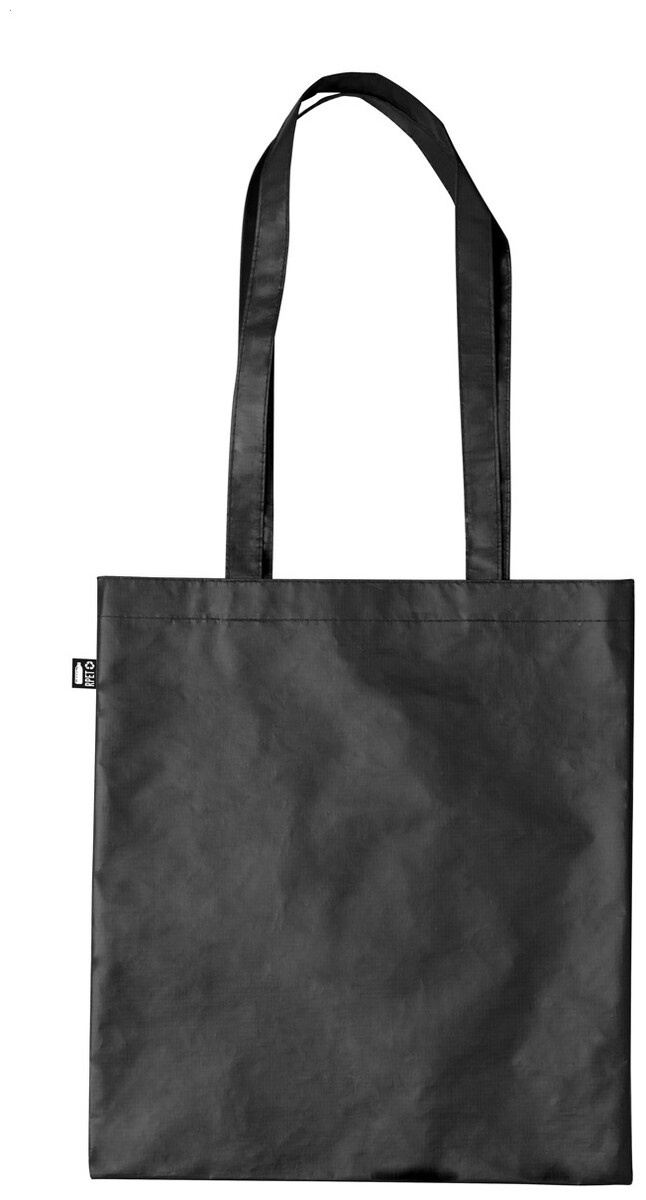 Polaminovaná recyklovaná RPET nákupní taška s dlouhými uchy, 105 g/m2, s etiketou s označením RPET.