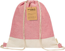 Dvoubarevná taška se stahovací šňůrkou z recyklované bavlny s výrazným štítkem z recyklované bavlny. 100% recyklovaná bavlna, 120 g/m2.