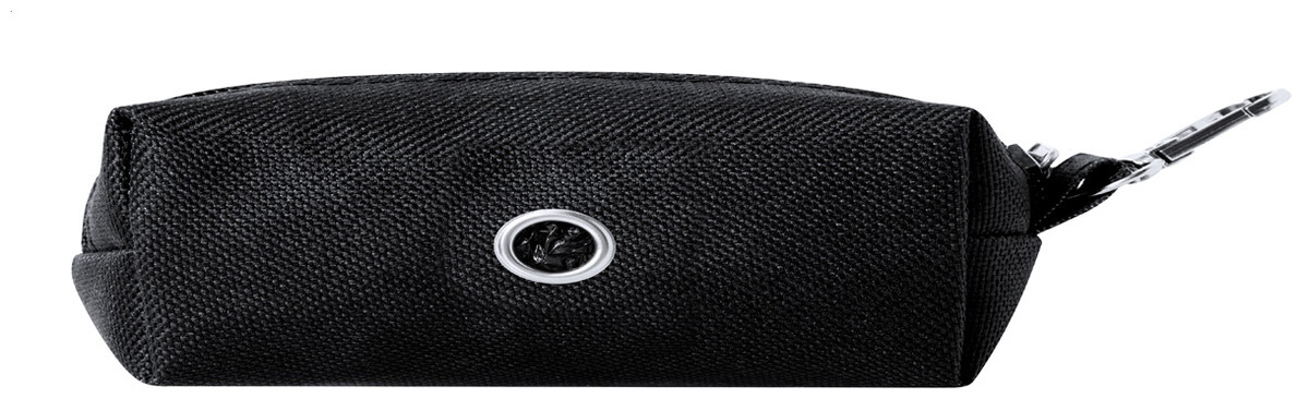 Zásobník sáčků na psí exkrementy z polyesteru RPET s karabinou. S 15 biologicky odbouratelnými sáčky.