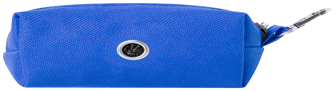Zásobník sáčků na psí exkrementy z polyesteru RPET s karabinou. S 15 biologicky odbouratelnými sáčky.