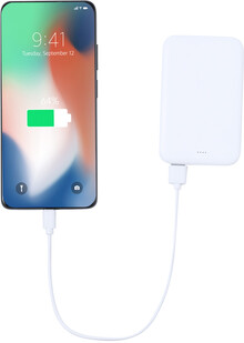 Powerbanka z recyklovaného ABS plastu s baterií 5000 mAh. Se 2 porty USB a 1 portem USB-C pro nabíječku. Vstupní port USB-C. Včetně USB nabíjecího kabelu.