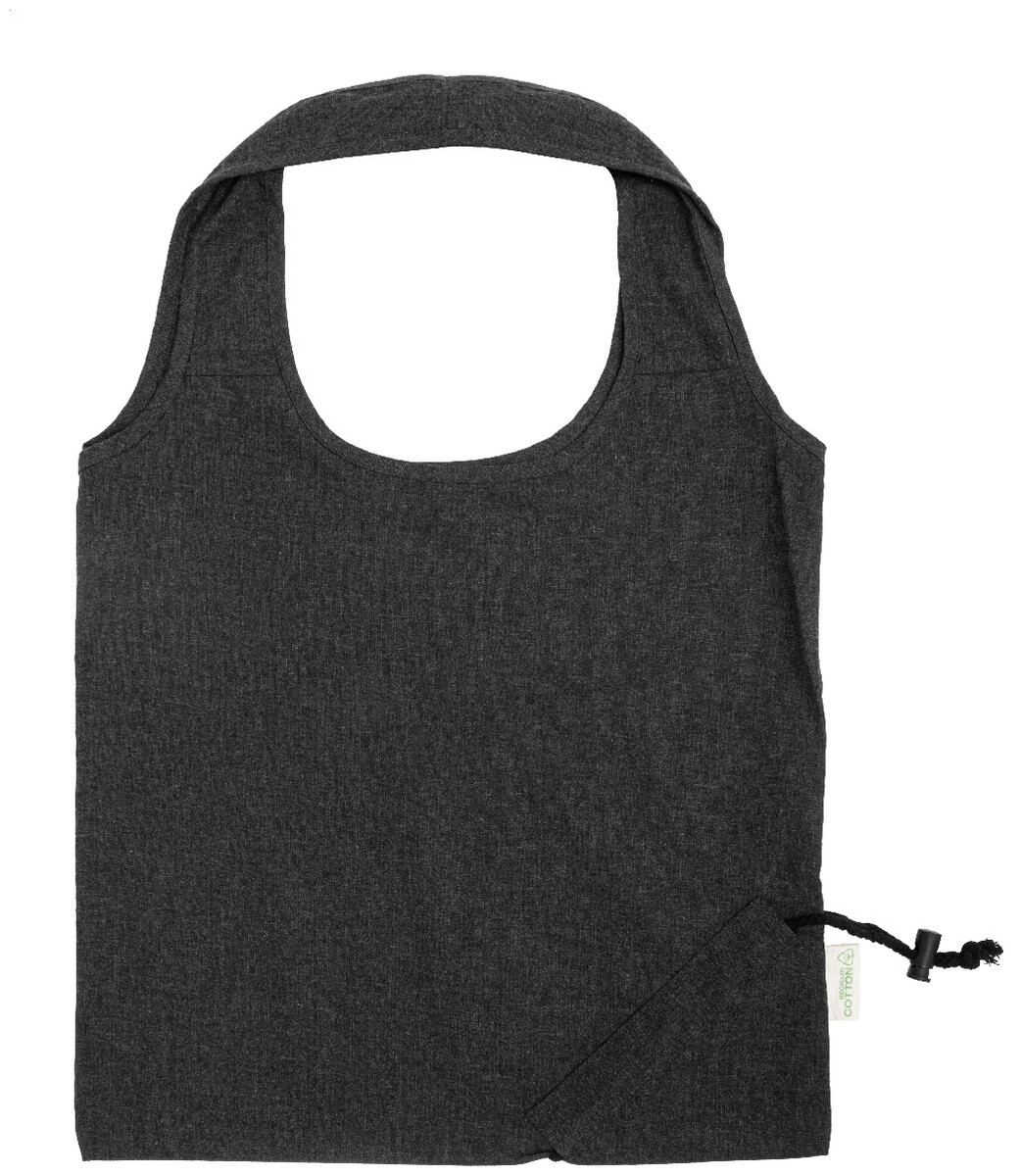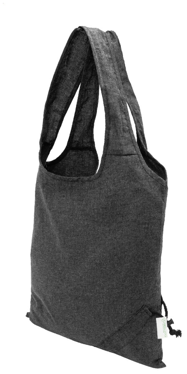 Skládací nákupní taška ze 70 % recyklované bavlny a 30 % polyesteru RPET, 140 g/m2. S výrazným štítkem z recyklované bavlny.