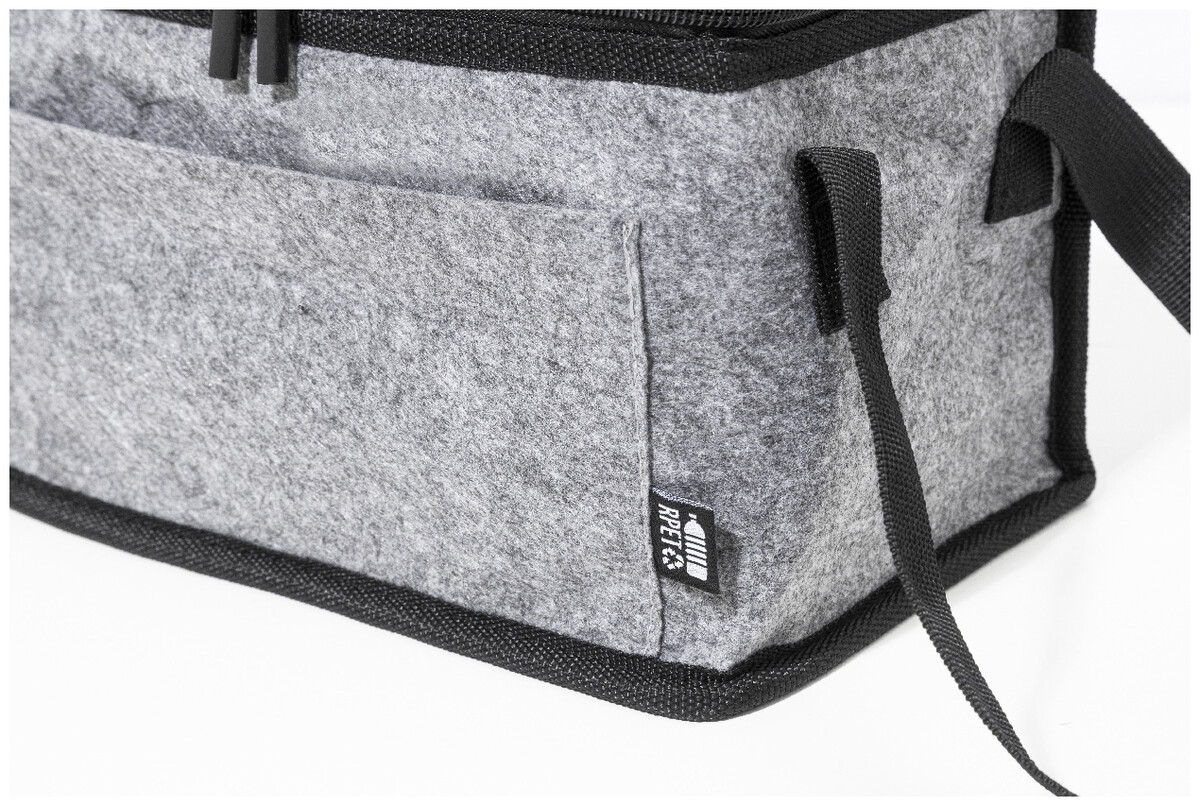 Chladicí taška na zip z RPET plsti s hliníkovým polstrováním, přední kapsou a bočními rukojeťmi. S výrazným štítkem RPET.