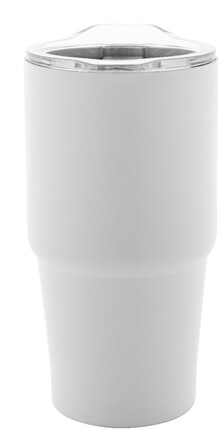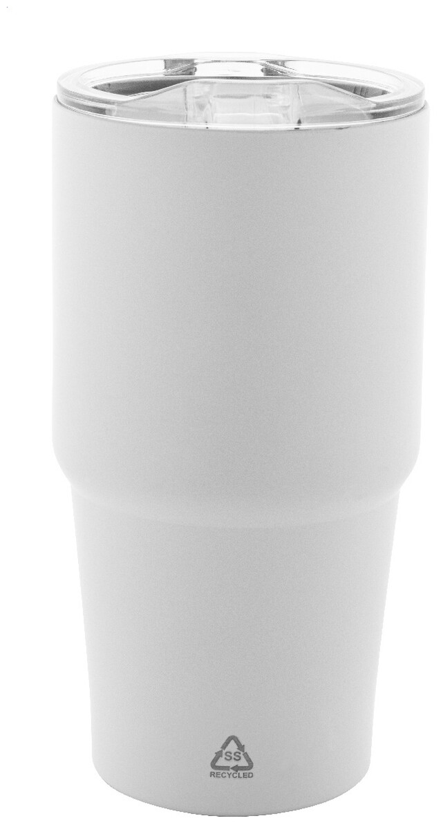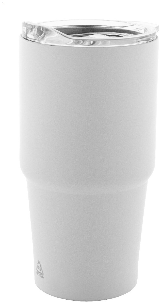 Dvoustěnný vakuově izolovaný termohrnek z recyklované nerezové oceli s víčkem z polystyrenového plastu. 600 ml.
