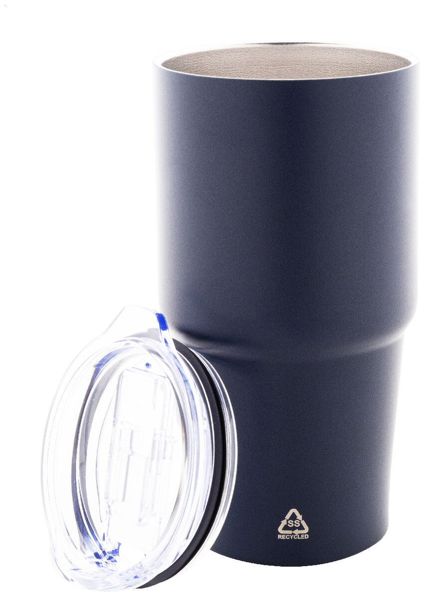 Dvoustěnný vakuově izolovaný termohrnek z recyklované nerezové oceli s víčkem z polystyrenového plastu. 600 ml.