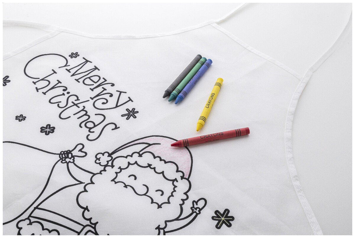 Vánoční zástěra na vybarvování pro děti z netkané RPET tkaniny s 5 voskovkami.