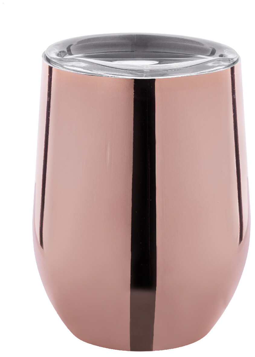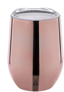 Dvoustěnný termohrnek z recyklované nerezové oceli s vysoce lesklou kovovou povrchovou úpravou a plastovým víčkem. 350 ml.