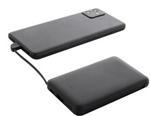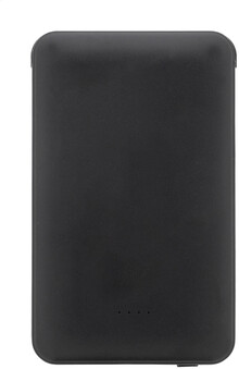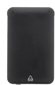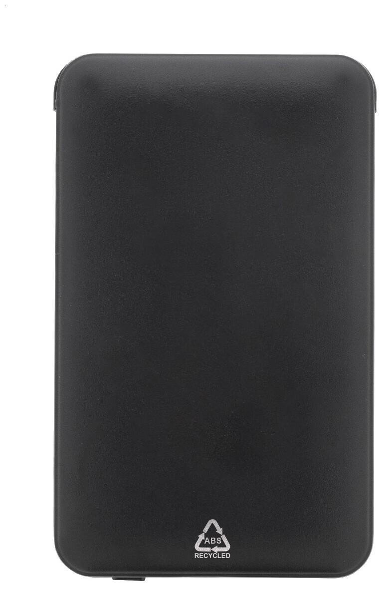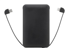Power banka z recyklovaného ABS plastu s baterií 5 000 mAh a integrovanými nabíjecími kabely s konektory micro USB, USB-C a Lightning. S nabíjecím portem USB a vstupním portem USB-C. Včetně nabíjecího kabelu USB.
