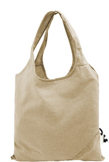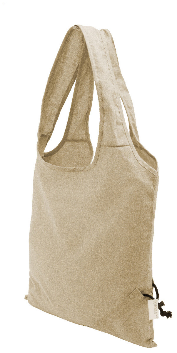 Skládací nákupní taška ze 70 % recyklované bavlny a 30 % polyesteru RPET, 140 g/m2. S výrazným štítkem z recyklované bavlny.