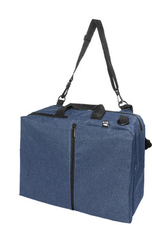 Dvojfunkční RPET batoh a taška na dokumenty s přihrádkou na zip, 2 předními kapsami na zip a polstrovanou přihrádkou na notebook (15"). S polstrovanými zády a ramenními popruhy. Součástí je i odnímatelný ramenní popruh pro použití jako taška na dokumenty. 600D RPET polyester s výrazným štítkem RPET.