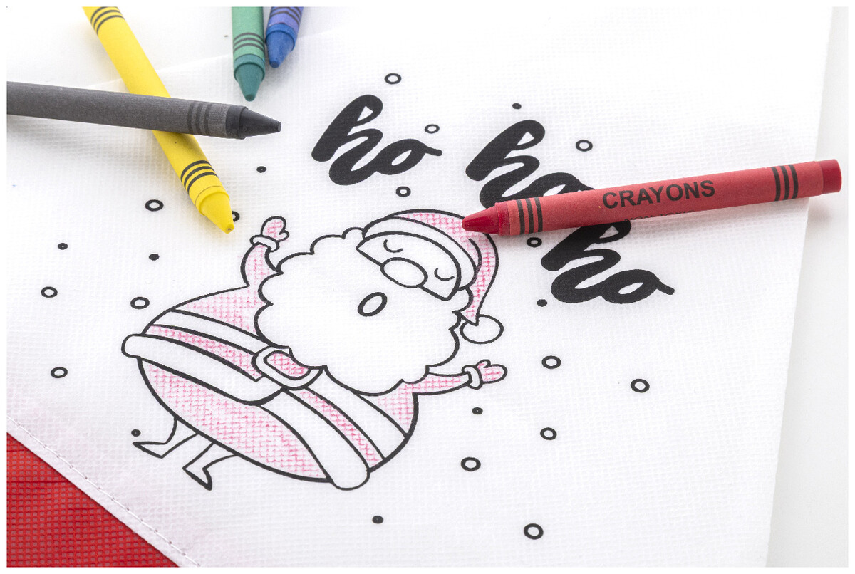Vánoční čepice Santy z netkané RPET tkaniny na vybarvování s 5 voskovkami.