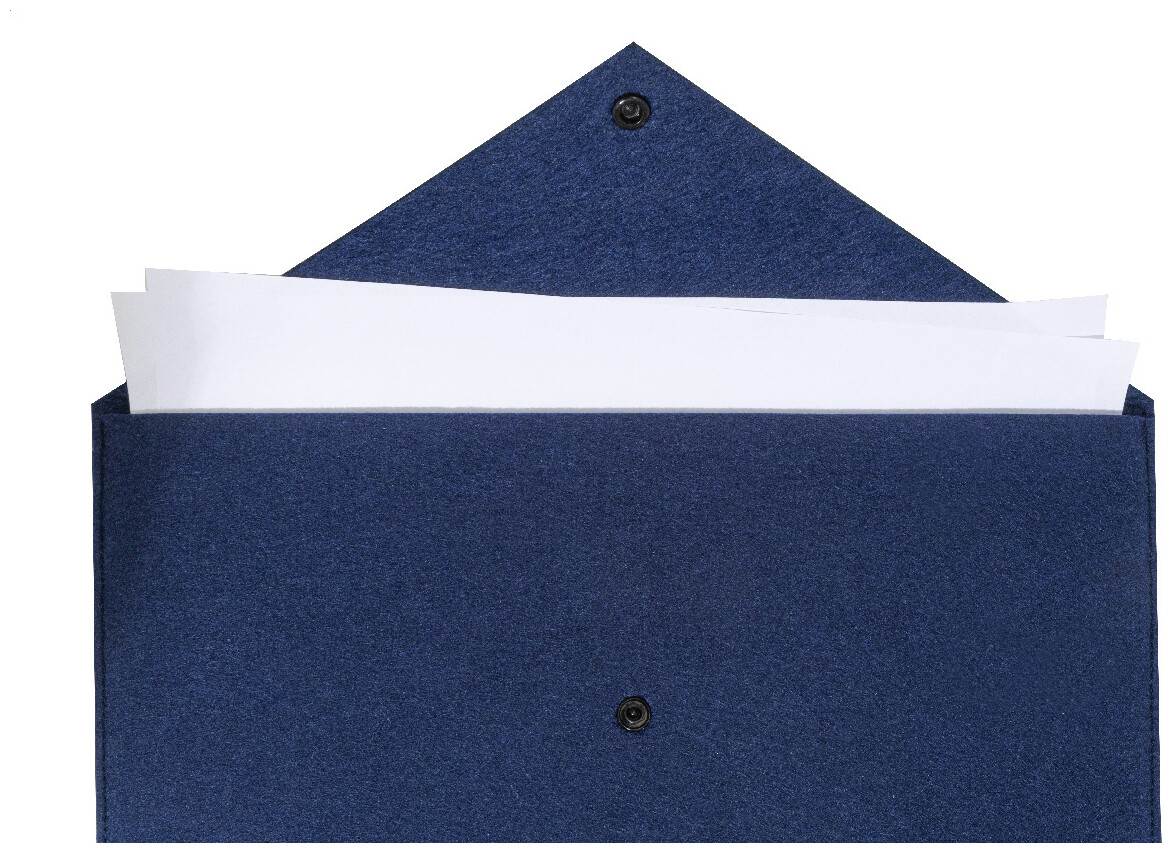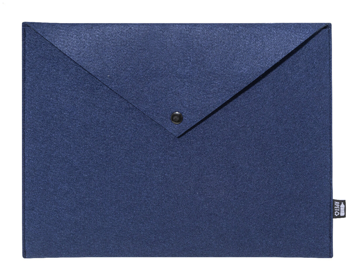 Taška na dokumenty nebo pouzdro na notebook z RPET plsti s knoflíkovým zapínáním. Vhodné pro notebooky do 13". S výrazným štítkem RPET.