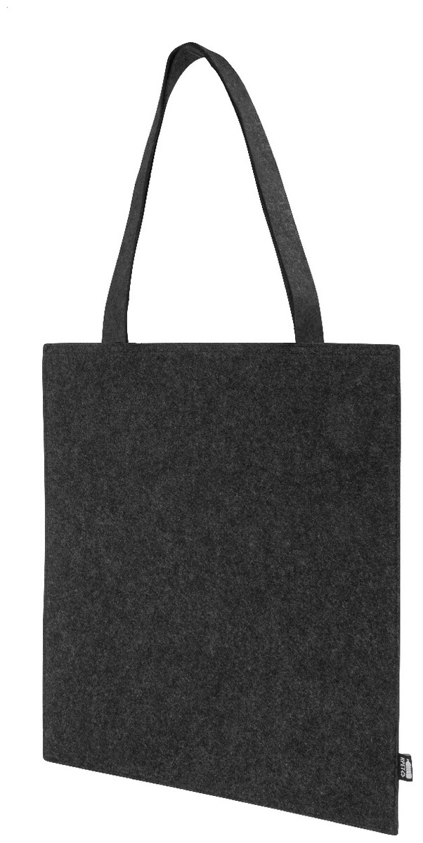 Nákupní taška z RPET plsti s dlouhými uchy. S výraznou etiketou z RPET.