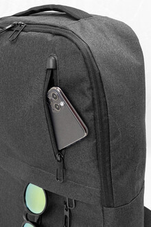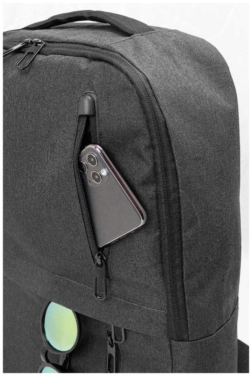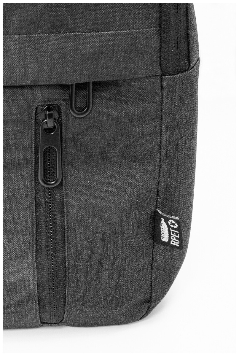 RPET batoh s hlavní přihrádkou na zip a 3 předními kapsami na zip. S polstrovanými přihrádkami na tablet (10") a notebook (15"), polstrovanými zády a ramenními popruhy. 600D RPET polyester s výrazným štítkem RPET.