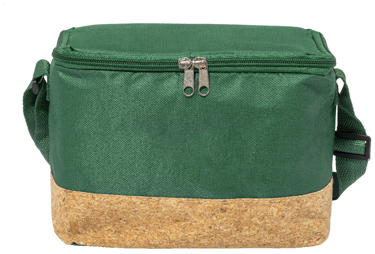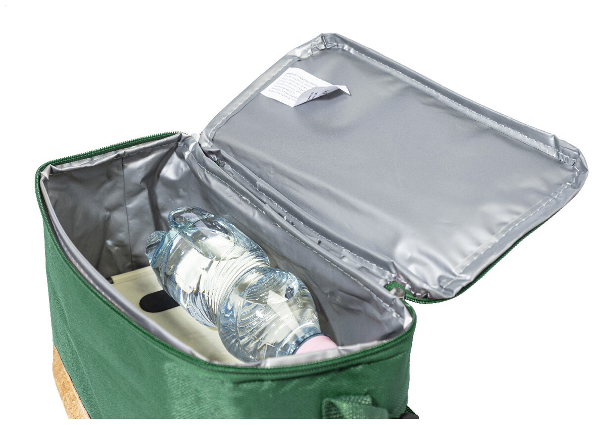 Chladicí taška na zip z 600D RPET polyesteru s přírodní korkovou základnou, PEVA polstrováním a nastavitelným ramenním popruhem. S výrazným štítkem RPET.