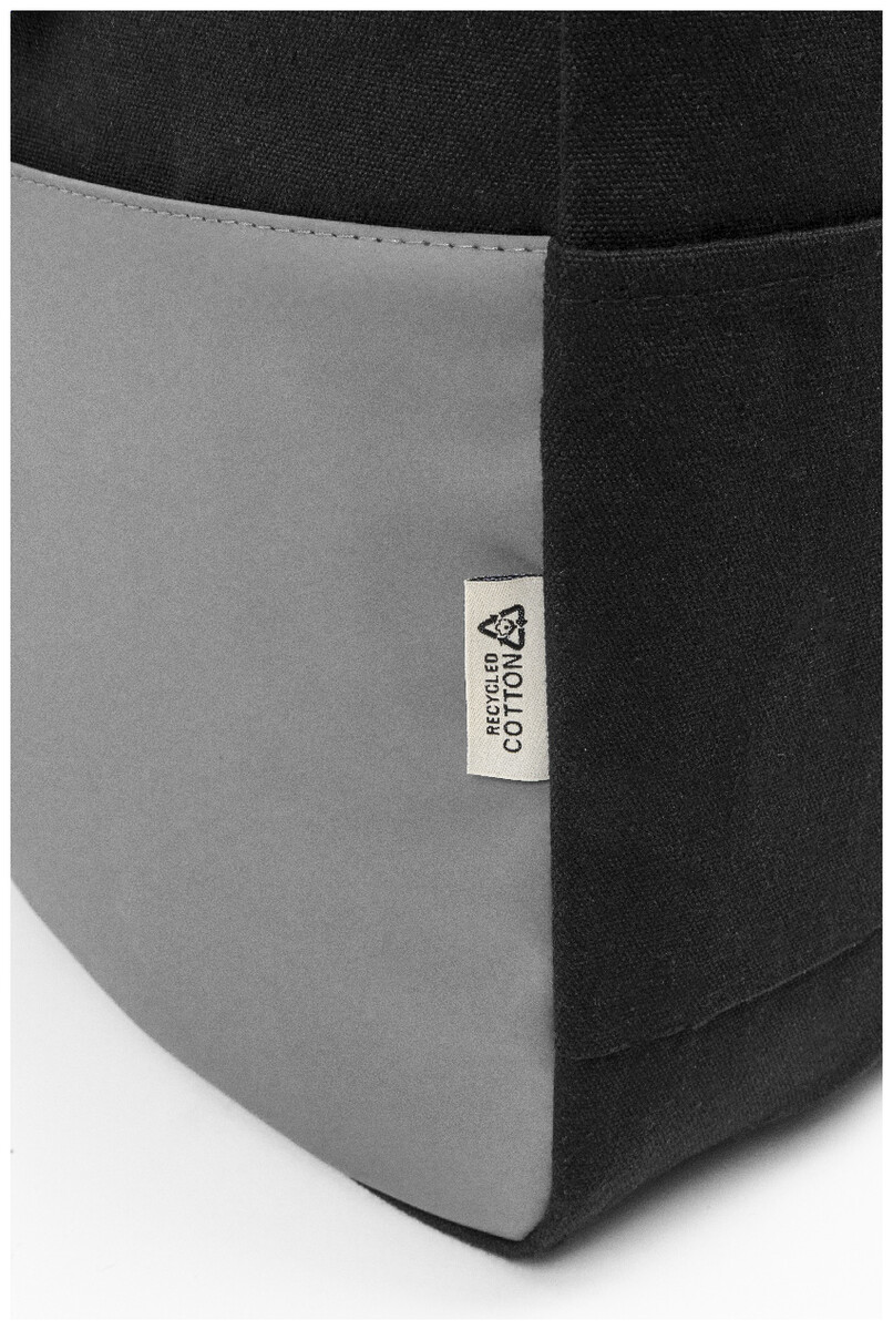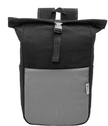 Rolovací batoh z recyklovaného plátna se zapínáním na přezku a přední kapsou na zip z měkké recyklované PU kůže. S polstrovanou přihrádkou na notebook (15"), bočními kapsami, polstrovanými zády a ramenními popruhy. 70% recyklované bavlny a 30% RPET polyesteru. S výrazným štítkem z recyklované bavlny.