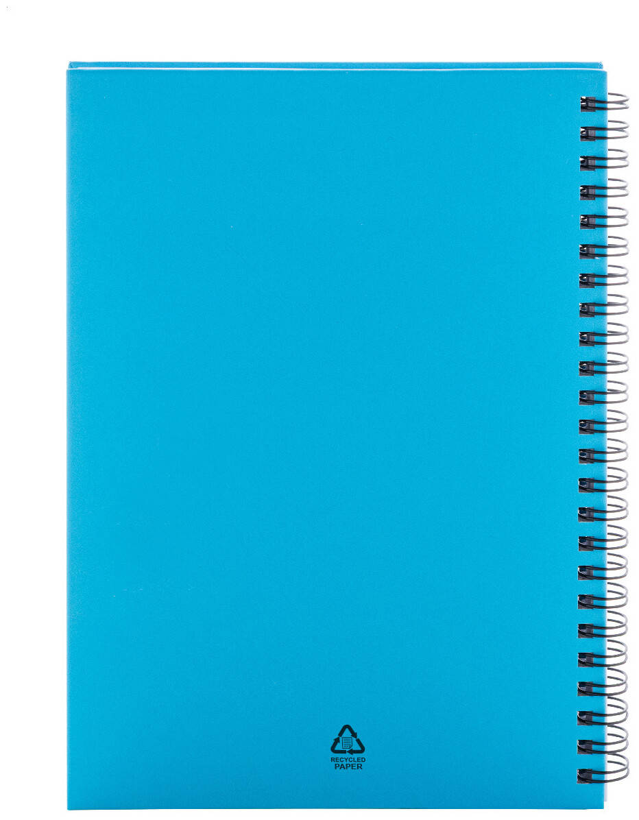 Spirálový blok A5 s 80 linkovanými listy z recyklovaného papíru.