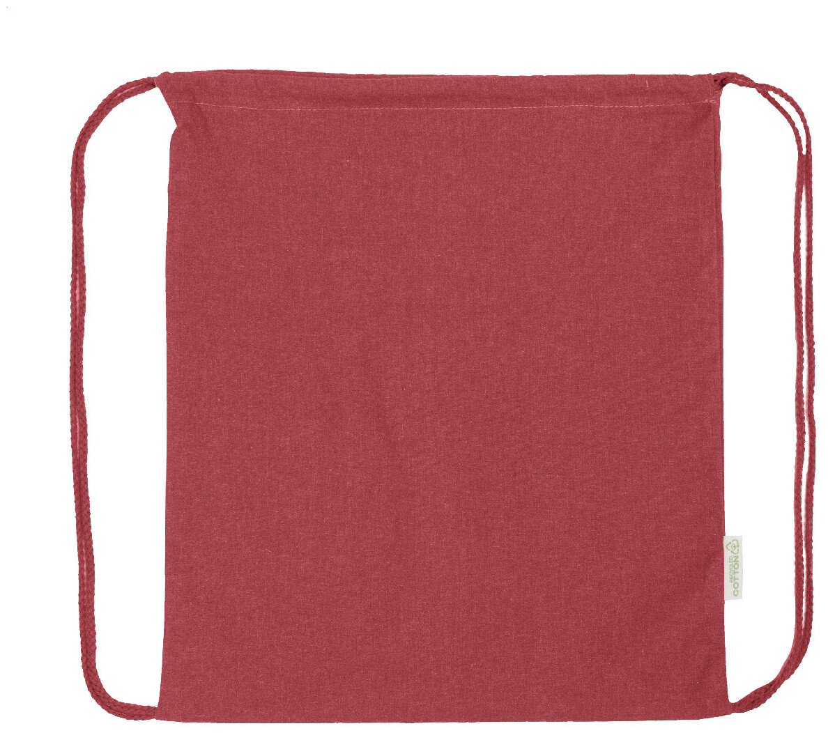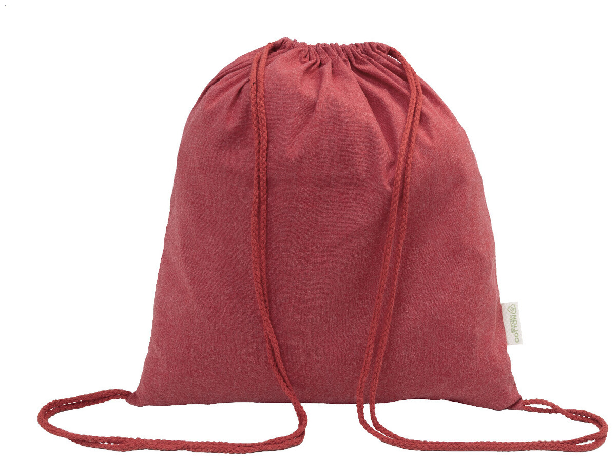 Vak se stahovací šňůrkou ze 70 % recyklované bavlny a 30 % polyesteru RPET, 140 g/m2. S výrazným štítkem z recyklované bavlny.