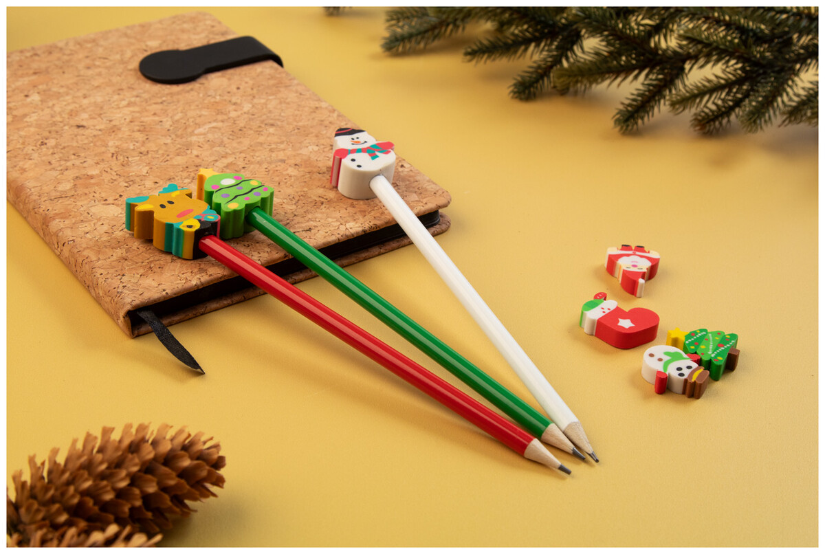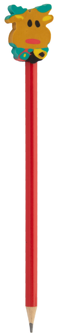 Dřevěná tužka s gumou ve tvaru vánoční figurky, ořezaná. Kvalita HB.