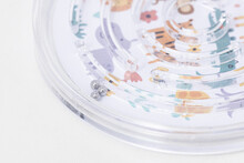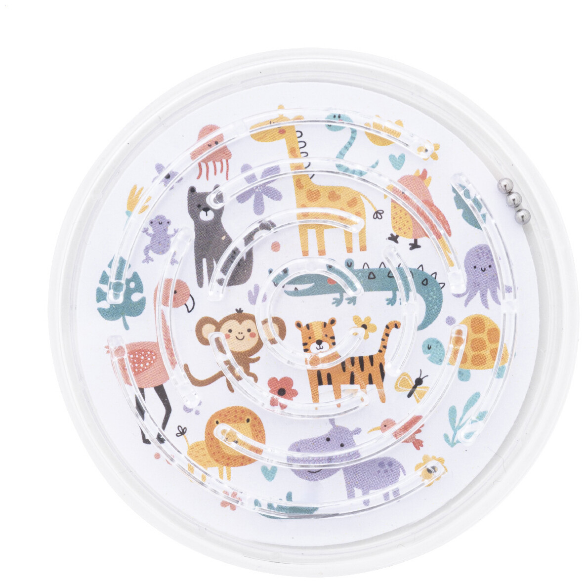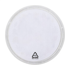 Kulatý labyrint z recyklovaného PS se třemi kovovými kuličkami. S barevnou papírovou vložkou na míru. Cena zahrnuje digitální tisk na obou stranách, nezahrnuje tiskovou přípravu. Min. mn.: 100 ks.