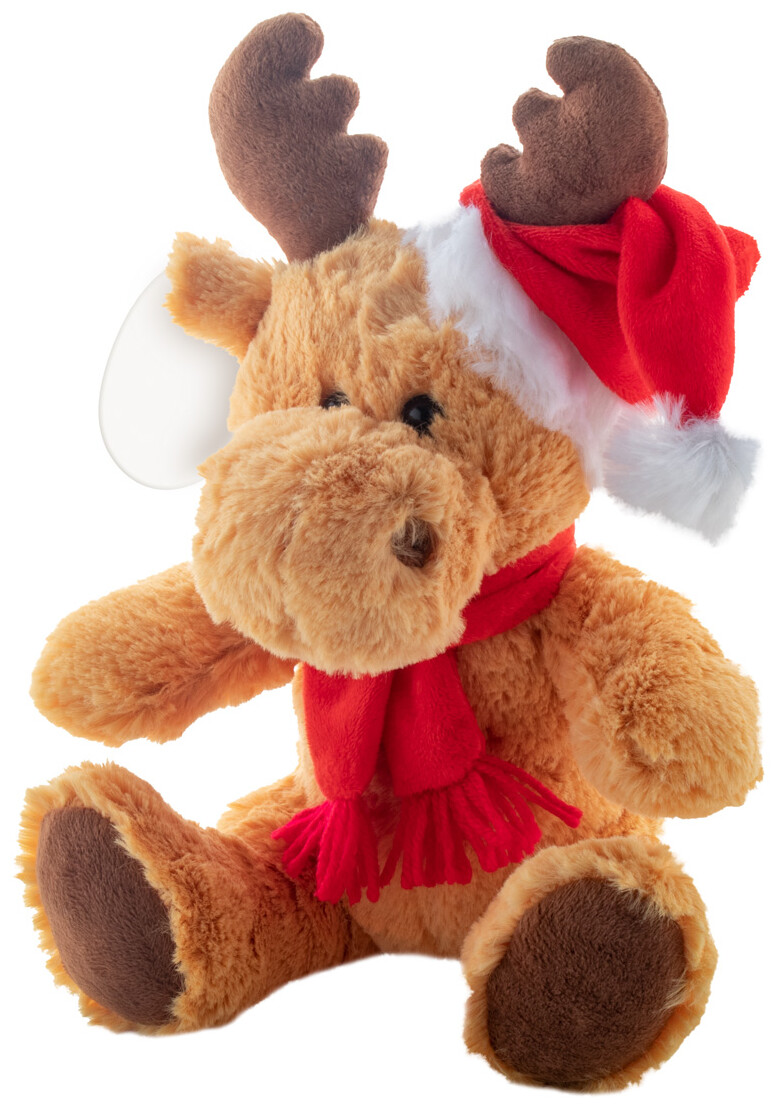 Plyšový vánoční sob s santa čepicí a šátkem. S potisknutelnou visačkou na uchu.