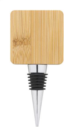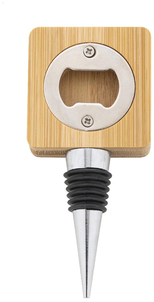 Kovová zátka na víno s čtvercovým bambusovým otvírákem na lahve.