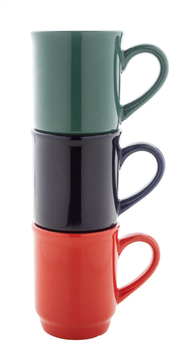Stohovatelný keramický hrnek s barevným lesklým povrchem, 220 ml. V krabičce z kraftového papíru. Ideální pro servírování svařeného vína na akcích nebo trzích.